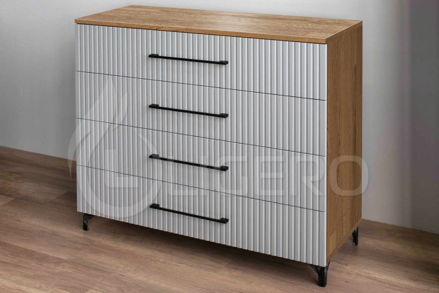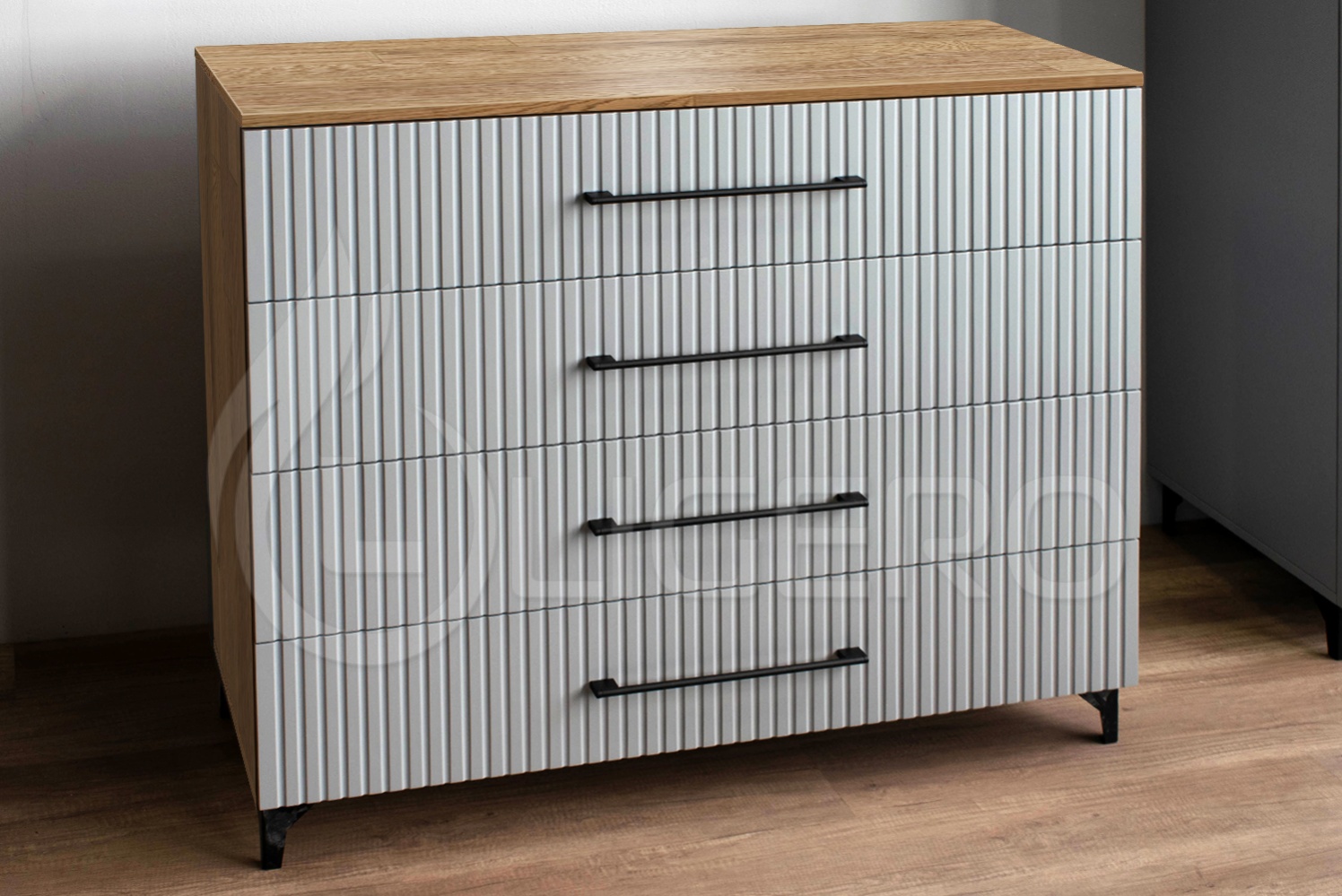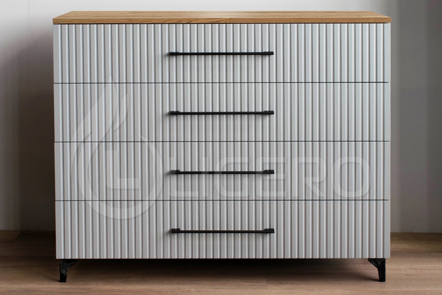 Комод Борджия из сосны привлекает внимание своей элегантной отделкой, где строгие линии вертикального рифления фасадов создают современный и динамичный образ. Натуральная текстура древесины добавляет изделию уют и подчёркивает его природное происхождение. Контрастные металлические ручки с лаконичным дизайном органично сочетаются с рельефом поверхности, придавая изделию стильный акцент. Лёгкие и устойчивые ножки придают конструкции воздушность и делают её визуально лёгкой. Этот комод станет прекрасным решением для создания гармонии в любом интерьере.