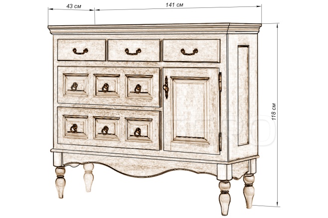 Комод Винтаж 9 из сосны выделяется классическим дизайном и удобной организацией пространства. Верхняя часть представлена тремя выдвижными ящиками, идеально подходящими для хранения мелочей или документов. Центральные и нижние секции оснащены глубокими ящиками и дверцей, за которой расположены просторные полки для крупных предметов или текстиля. Фасады украшены аккуратными рамочными вставками, подчеркивающими геометрию изделия. Металлическая фурнитура дополняет стильный облик, добавляя изделию изысканности. Фигурные ножки обеспечивают устойчивость и визуальную легкость конструкции, а натуральная сосновая древесина создает ощущение тепла и уюта.
