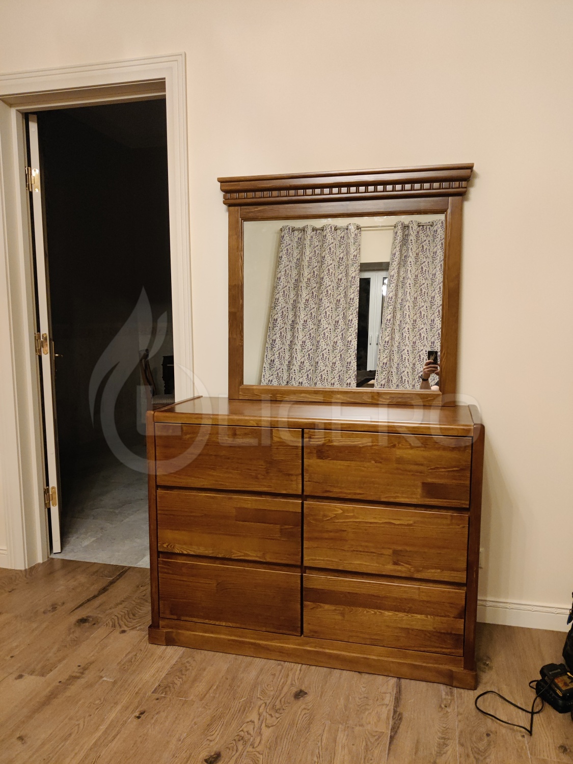 Высокофункциональный комод, изготовленный из экологически чистого материала, подойдет для установки и в комнате с маленькой квадратурой. Поскольку он заменит небольшой бельевой шкаф. Оттенок древесины для него можно выбрать самостоятельно.