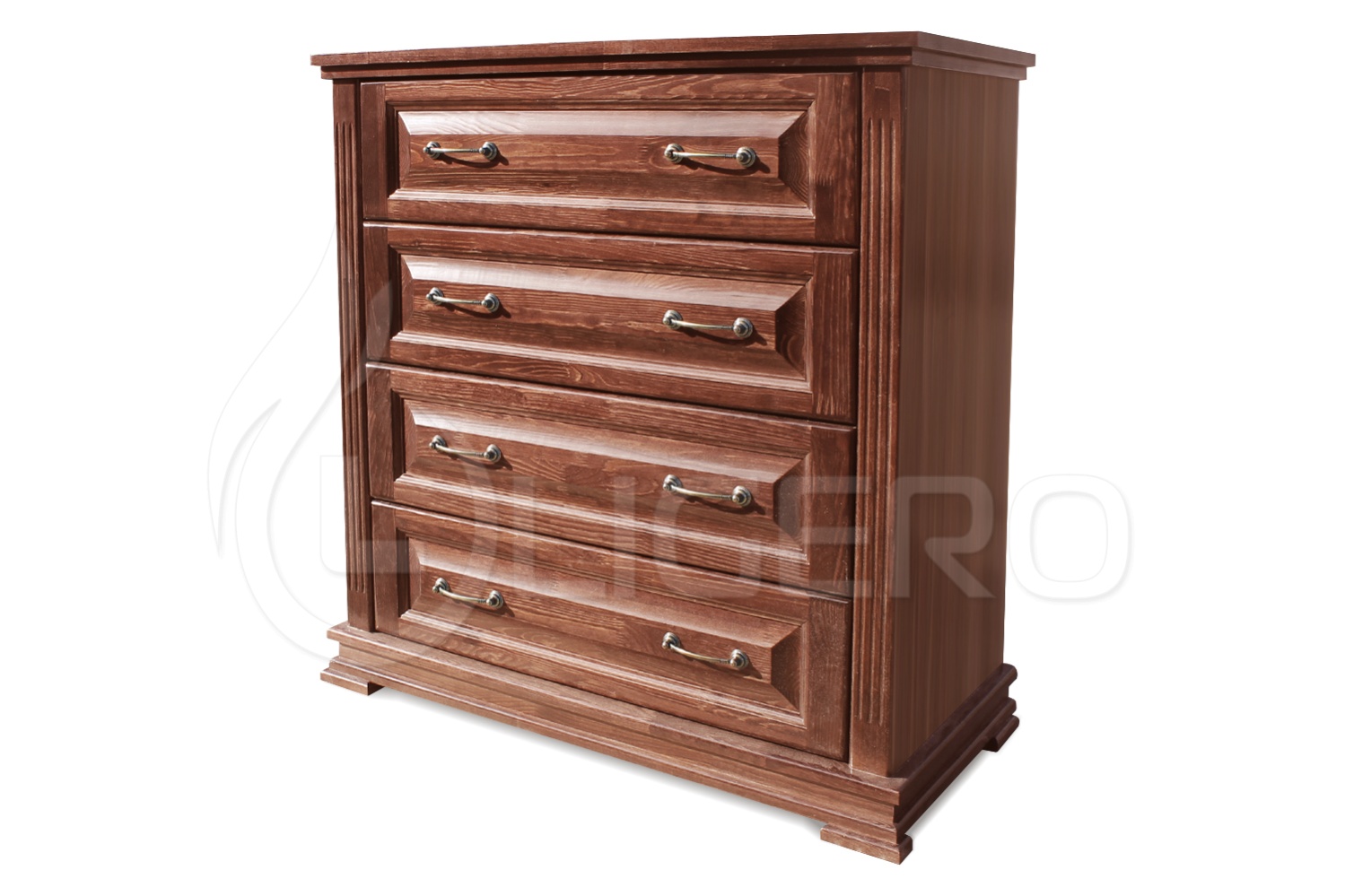 Красивый комод имеет лаконичный дизайн, который полностью соответствует классическому стилю. Выглядит конструкция презентабельно и дорого даже при отсутствии дополнительного декора. Единственным украшением служит качественная фурнитура, а также филенчатые фасады ящиков. Лучшим вариантом станет установка в комнате с минимальной квадратурой и оформленной, например, в эко-стиле.