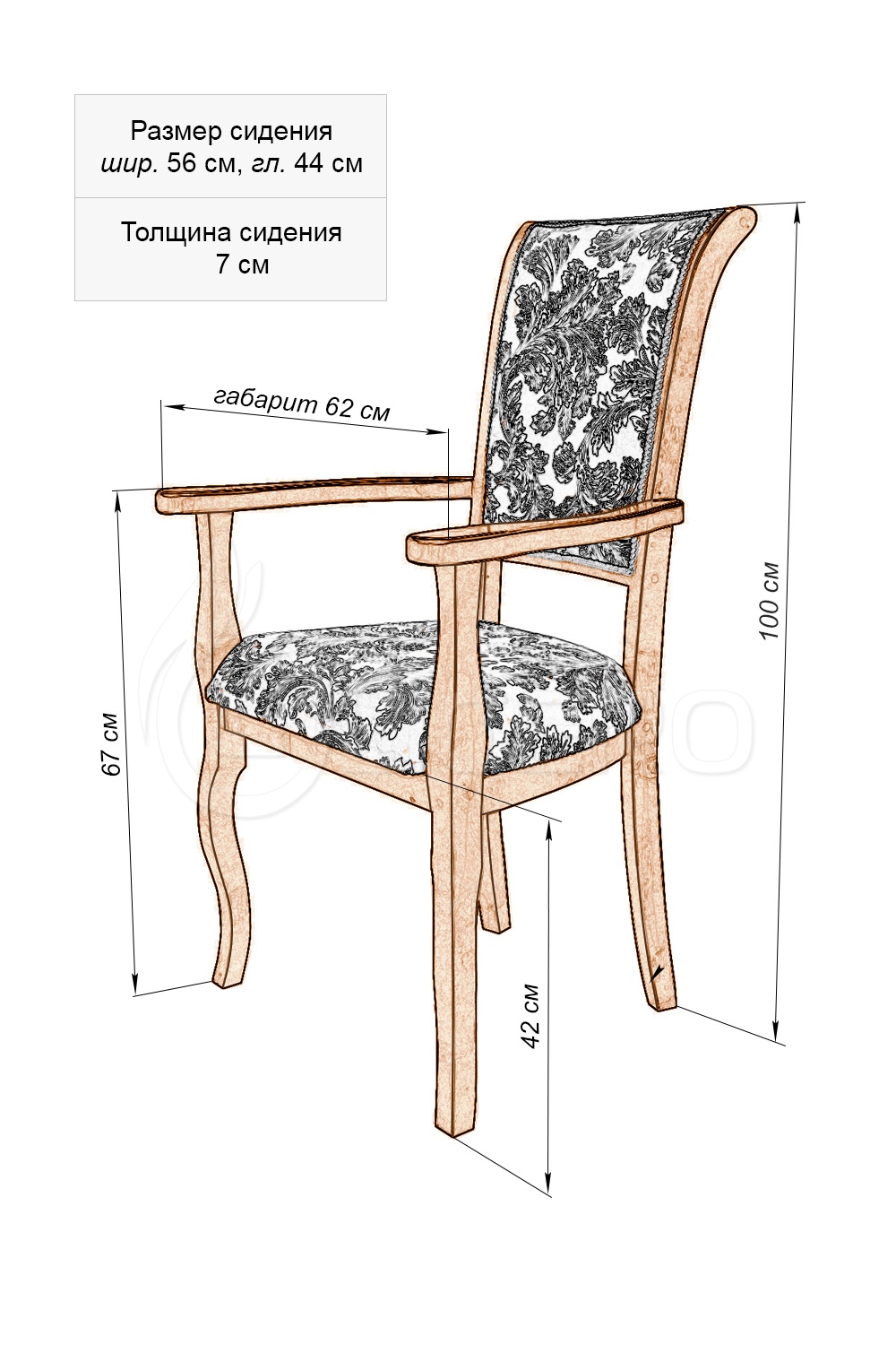 Кресло Легранж оборудовано подлокотниками, высокой, изогнутой спинкой. Дизайн простой, а украшением выступает текстиль с приятным принтом, который отличается хорошей плотностью. Изготовлено кресло из массива березы, а его оттенок покупатели могут выбрать из каталога. В нем представлено множество модных цветовых решений.