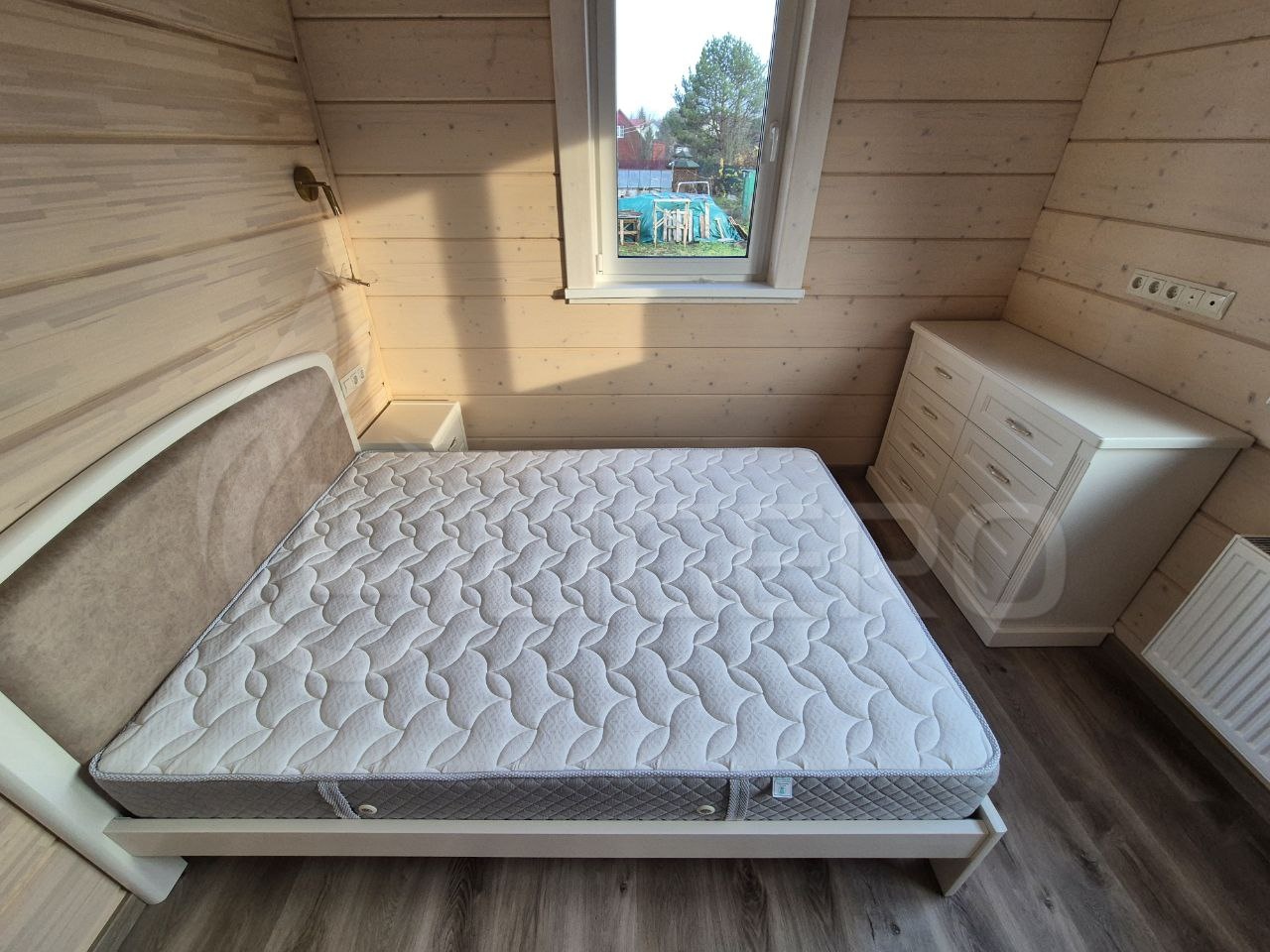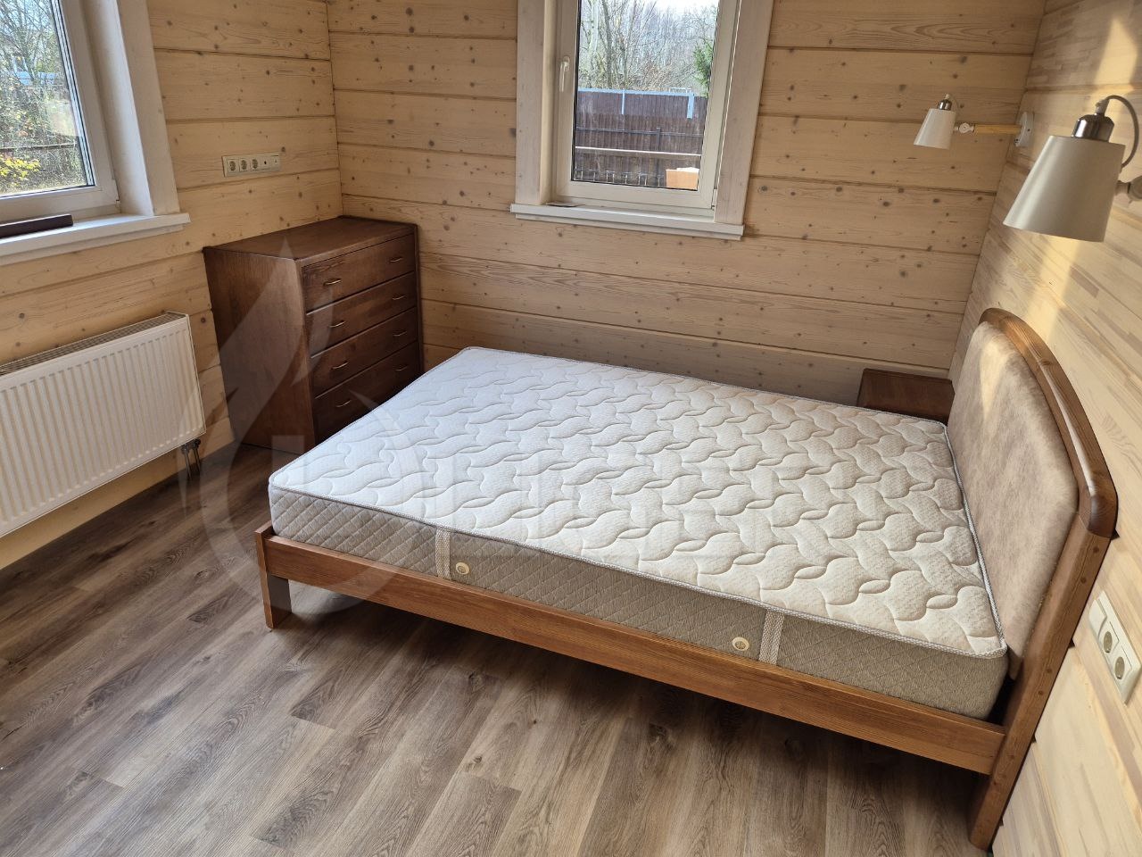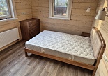 Эта кровать с каркасом из сосны сочетает в себе надёжность и природную эстетику. Сосновая древесина придаёт изделию лёгкость и прочность, а её естественный оттенок добавляет тепла в интерьер. Закруглённые углы и гладкие поверхности каркаса обеспечивают безопасность и комфорт. Высокое изголовье декорировано вставкой из мягкого материала, создающей уютное место для отдыха. Кровать подойдёт для людей, предпочитающих экологичные и натуральные материалы, и станет практичным решением для спальни, добавляя в неё атмосферу спокойствия и уюта.
