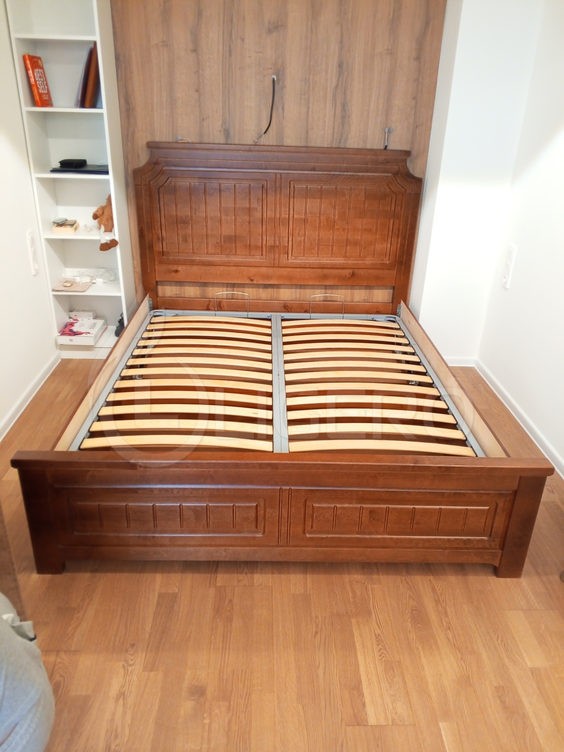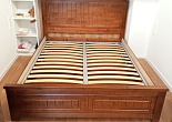 Кровать Офелия оборудована высоким изголовьем, имеющим необычную конструкцию и украшенным резными элементами. Поэтому она не выглядит слишком массивной. А поскольку изготовлена кровать из древесины с использованием новейших технологий, срок эксплуатации её максимально длительный.