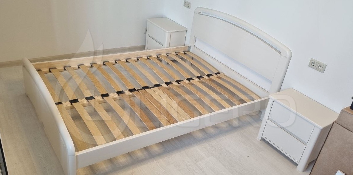 Броский декор отсутствует, единственное украшение – это необычная форма изголовья. Существует возможность дополнительно оборудовать кровать ящиками на направляющих и колесиках. В каталоге можно выбрать оттенок древесины, чтобы сочетание с интерьером было гармоничным и в комнате царила атмосфера уюта.