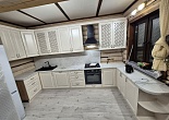 Кухня Милена подойдет для помещений с достаточным количеством свободного пространства и нестандартной планировкой. Дизайн приятный и лаконичный, лишенный броского декора. Украшением выступают резные фасады некоторых дверок. Поэтому оптимальным вариантом станет комбинация с классическим стилем. Но возможны эксперименты и с другими направлениями в дизайне интерьера.