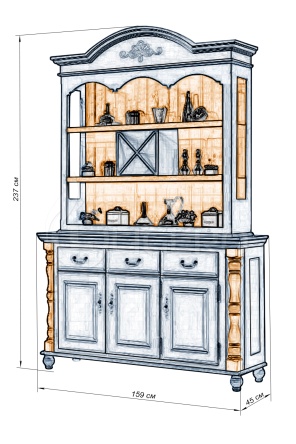Сервант Ретро 21 из дуба воплощает надежность и благородство благодаря прочной и массивной древесине. Выразительный рисунок волокон и тщательно проработанные элементы делают изделие украшением любого интерьера. Вместительные полки и ящики обеспечивают организованное хранение вещей, а верхние секции позволяют разместить декоративные предметы и посуду. Долговечность дуба и качественная обработка гарантируют надежность мебели на долгие годы, добавляя помещению солидности и уюта.