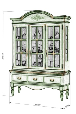 Этот сервант из бука выделяется своей прочностью и аккуратным исполнением. Верхняя часть с высокими стеклянными дверцами идеально подходит для демонстрации посуды, ваз и украшений, сохраняя их защищенными от пыли. Три удобных выдвижных ящика дополняют функциональность, обеспечивая пространство для хранения. Резные детали и изящные формы подчеркивают элегантность изделия, а твердая структура бука обеспечивает долговечность и устойчивость конструкции. Мебель станет идеальным дополнением как для классического, так и для современного интерьера.