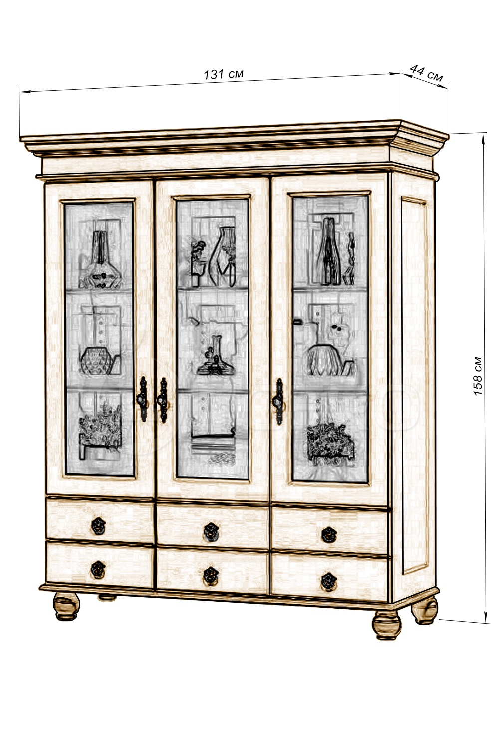 Трехстворчатый сервант из березы привлекает своей износостойкостью и элегантной простотой. Прозрачные дверцы в верхней части подчеркивают утончённый дизайн, делая его подходящим для демонстрации сервизов или аксессуаров. Нижние ящики обеспечивают дополнительное пространство для хранения. Березовая древесина известна своей плотной структурой и устойчивостью к нагрузкам, что делает мебель долговечной. Лаконичность форм и натуральные узоры дерева позволяют использовать этот шкаф как акцент в интерьере.
