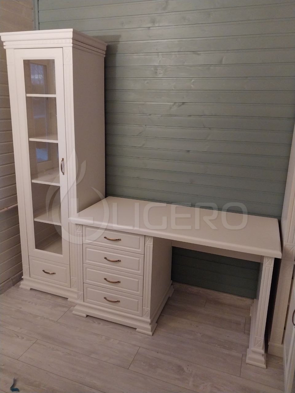 Сосна - щит мебельный сращенный (класс Экстра), задняя стенка: ламинированная ДВП (без доплаты) или фанера в цвет изделия (с доплатой). Изготовление из березы, бука, дуба – с доплатой.