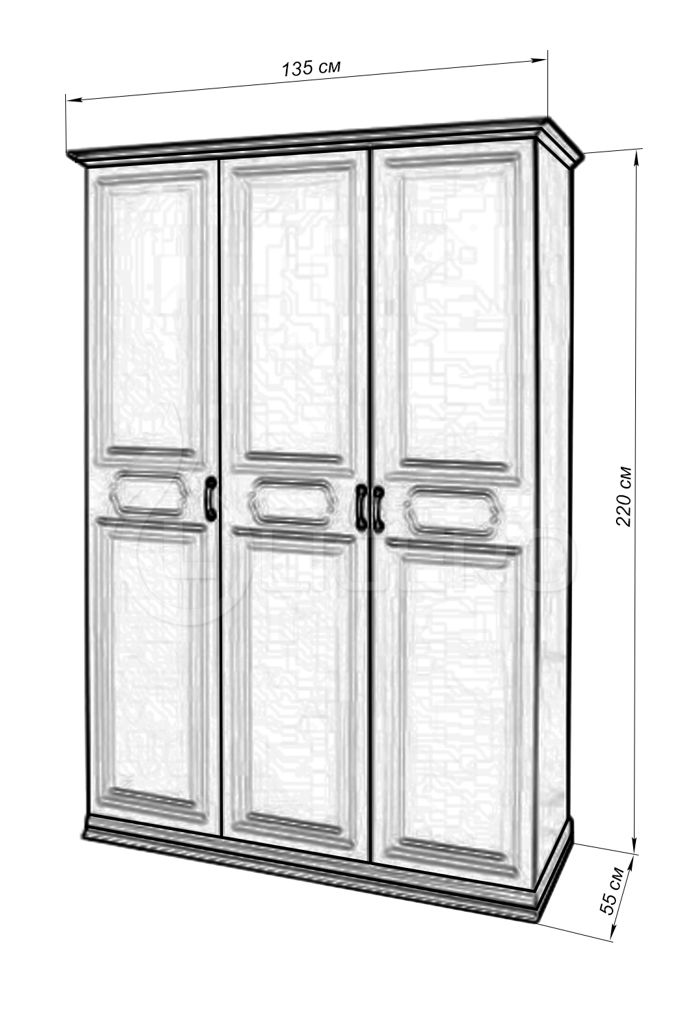 Шкаф с тремя створками из серии «Лира» имеет лаконичный дизайн, который соответствует классическому стилю. Используемая фурнитура контрастирует с оттенком древесины. И поэтому тандем выглядит весьма интересно и презентабельно. По желанию, покупатели могут подобрать другие ручки.