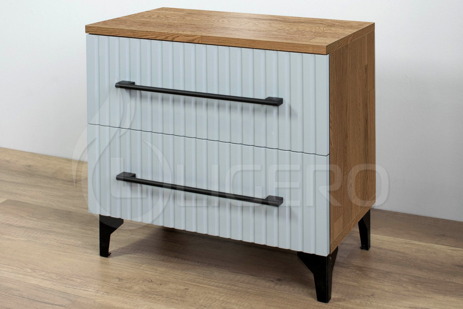 Тумба Борджия из сосны выделяется минималистичным дизайном и природной текстурой. Рельефный фасад с вертикальными линиями добавляет изделию оригинальности, создавая эффект легкости и современности. Металлические ручки контрастно подчеркивают натуральность древесины, а устойчивые ножки обеспечивают надежность конструкции. Использование сосны делает тумбу легкой, но при этом долговечной, сохраняя её функциональность в течение многих лет. Это стильный элемент интерьера, который гармонично сочетается с разными стилями оформления.