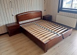 Тумбочка Бали Люкс, дизайн которой оформлен в классическом стиле, не занимает много места. Габариты конструкции небольшие, но она отличается функциональностью, поскольку оборудована двумя выдвижными ящиками. Изготовлена тумба из массива бука.